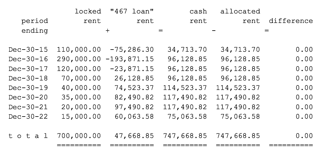 - Negative “467 loan” rent payments are from the lessor to the lessee.