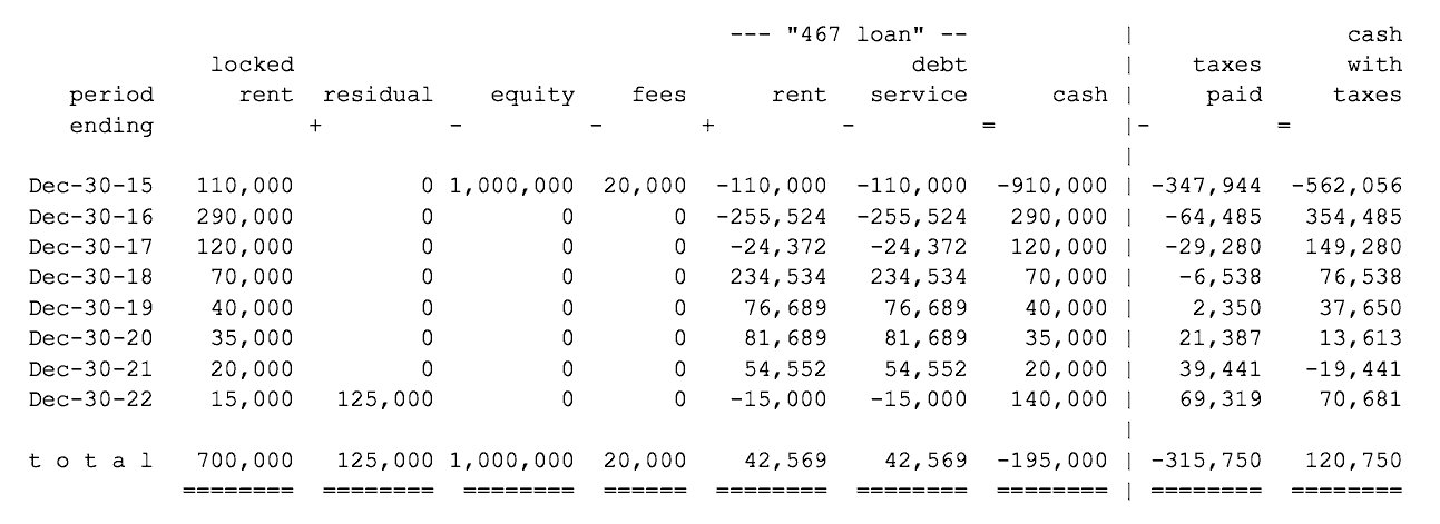 This structure introduces rent payments referred to as 467 loan rent payments. These payments are exactly matched by 467 loan debt service payment.