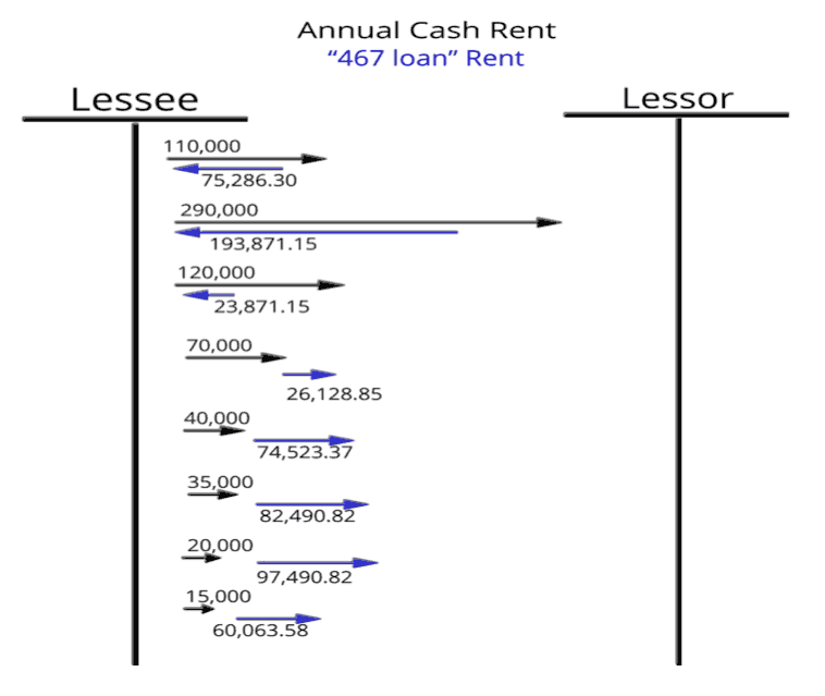 - Positive “467 Loan” rent payments are from the lessee to the lessor.