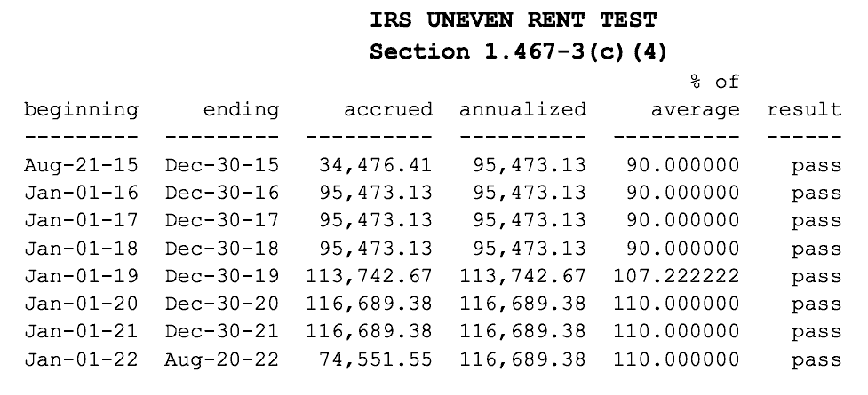 The 467 loan structure is an excellent tool to allow leases to pass the Uneven Rent Test while enhancing the yield. Leases already passing the uneven rent test at the 90/110 limits cannot receive a yield enhancement from a 467 loan structuring. The best way to enhance yield for leases already at the 90/110 limit is the 3-year window. Perhaps this technique can prove useful in your lease structuring.
