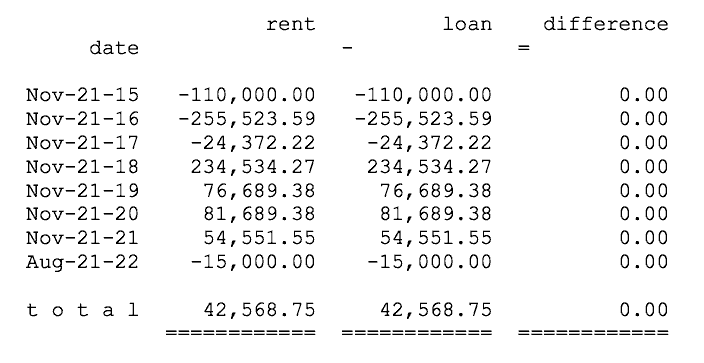 467 loan rent payment exactly matches 467 loan debt service payments: